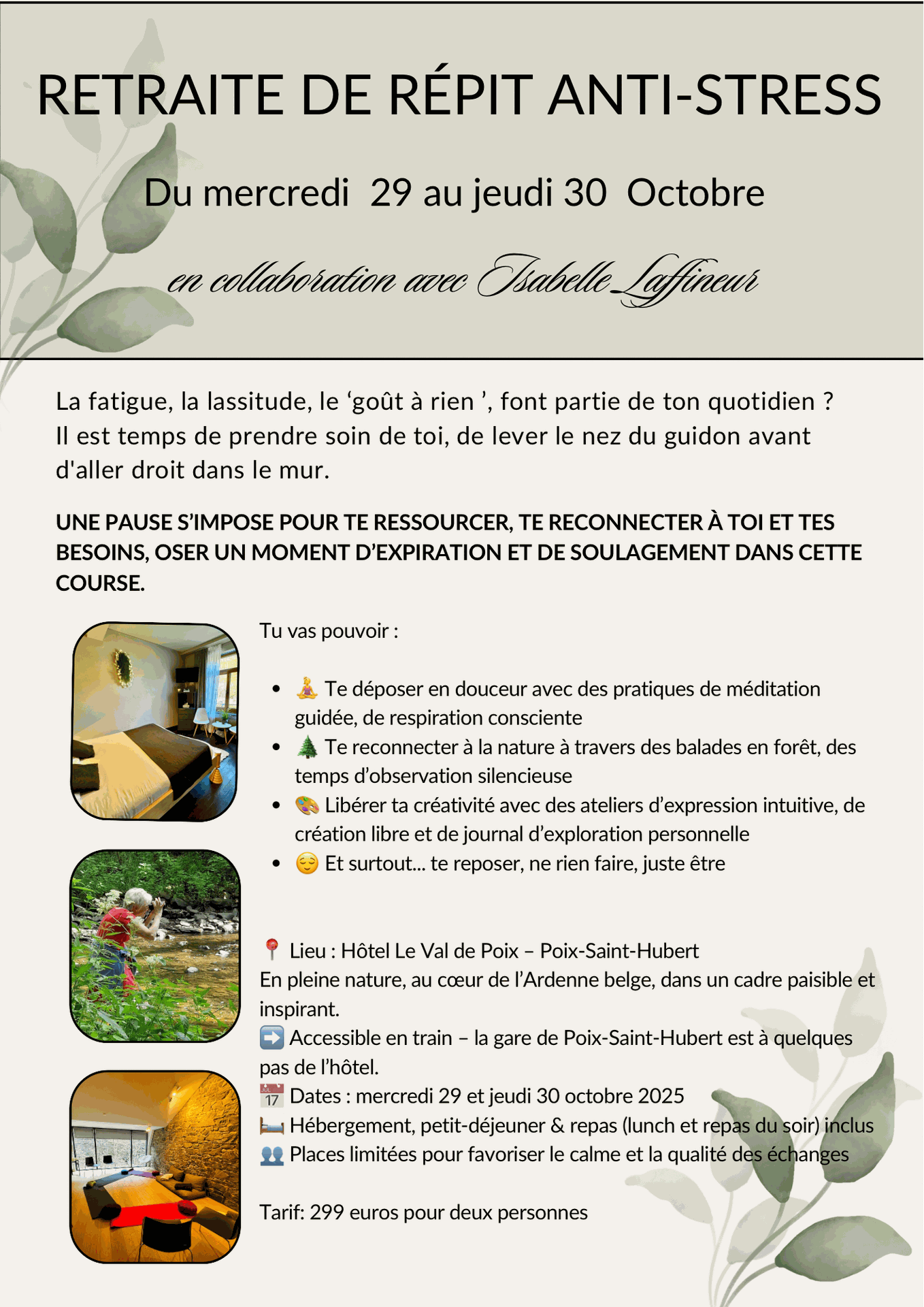 Retraite de répit anti-stress Octobre 2025: